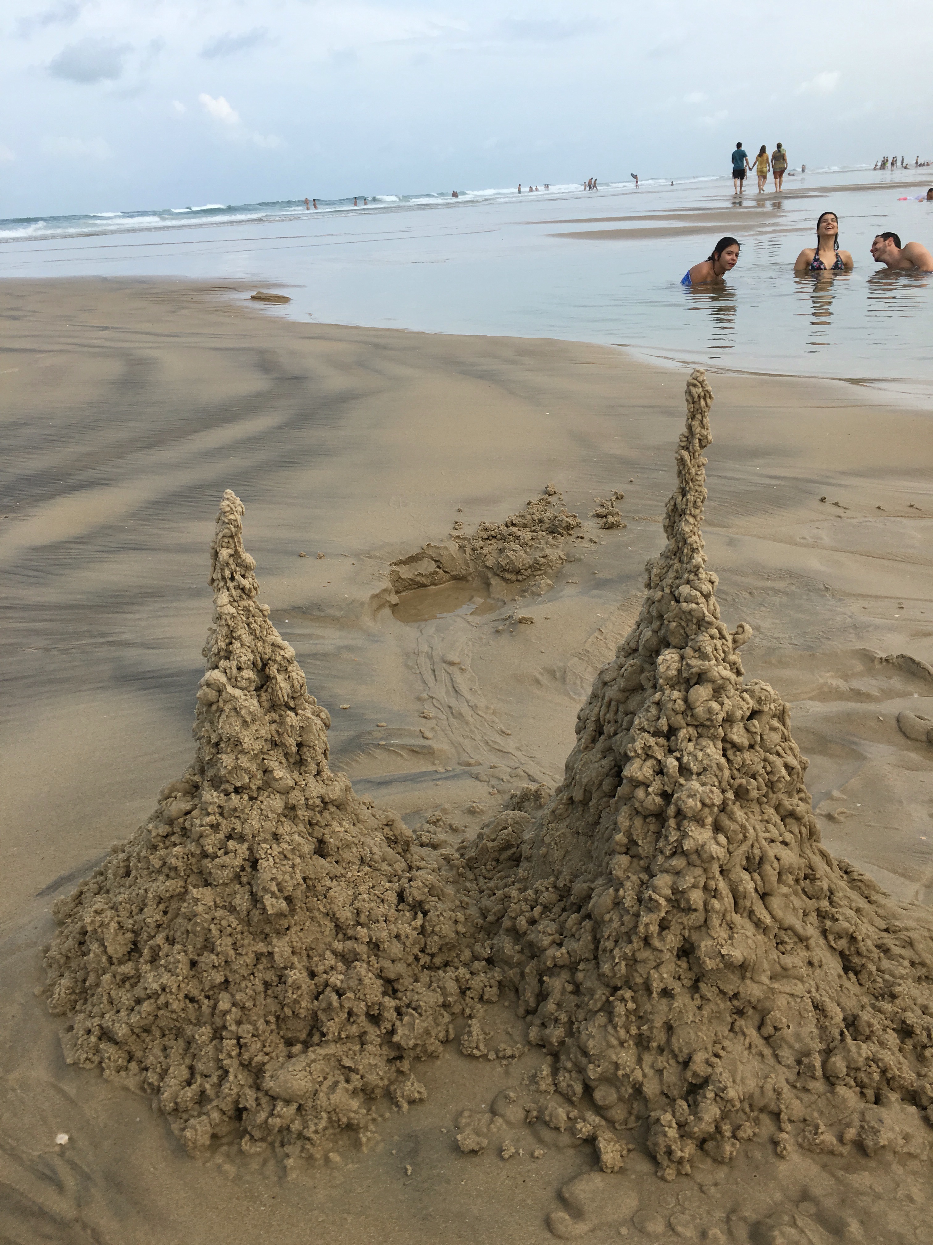 Headed to the beach early and took a bus half way down to croco beach restaurant. Spent the morning frolicking in the waves and working on our tans. By 11:30 we headed to lunch where I realized I was quite sunburnt. We ate the seafood buffet and hung out in the shade. Then we started walking back and stopped to build a sand castle. We finished walking back to the hotel and slathered me in aloe gel. We found a pizza shop down the street for dinner. No air conditioning in our room mixed with sunburn made for a rough nights sleep.