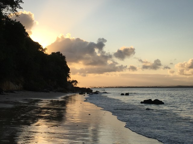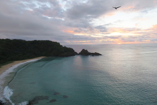 We had a wonderful breakfast at our pousada before setting out for the day. We looked at google maps and saw a road heading to a remote beach. We decided to take the road but upon arriving there was a barbed wire gate. We decided to press on but eventually reached another locked gate and a sign indicating we shouldn’t try to keep going. We turned around and found another trail that looked promising. Halfway down we met some people who told us the natural pool at the end was closed. Frustrated we returned to the beach from the day before. We had bright our snorkel equipment but were required to rent a life jacket so that we wouldn’t walk on the coral. The snorkeling was absolutely amazing. We saw several sea turtles and countless fish. It was like swimming in an aquarium. After snorkeling for a couple hours we walked back to our pousada and made some sandwiches for lunch. It was late afternoon and we decided to hike to a good spot for a sunset. We had a map provided by the island but we could not find the trail shown on the map. It’s probably for the best because the trail was quite long and difficult and we only had a couple hours until darkness. Instead we took another trail to a beautiful huge beach where we only saw a handful of other people. There were rock islands just offshore, sea turtle nests, and birds that kept swooping overhead. I took a swim and tried to catch a bird. The water was crystal clear and I didn’t want to leave. But we hiked on for the sunset, stopping at a scenic overlook of sueste bay where we had snorkeled. There were two cannons remaining from an old fort here as well. We continued on to probably the southernmost tip of the island where we caught the last few moments of the sunset. We were out of water and exhausted by the time we hiked back to our pousada. We ordered a pizza and watched a movie before bed.