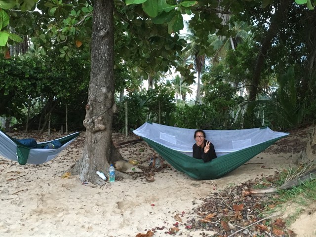 Some information about the island: About 70% of the island is a national park so it’s necessary to pay the fee if you want to see much. The island was originally discovered in 1502 by amerigo Vespucci and was claimed by Portugal, France, and Holland at different times. You can still see the ruins of various forts on the island. In the 1800’s the island was used as a prison colony and all the trees were burnt down to prevent the escape of prisoners by building boats. Americans used the island as a military base during World War Two and in 1988 the island became a national park. There were so many visitors it caused problems for the park so the island imposed a limit of 420 visitors on the island at a time. I’m not sure how this is enforced but it’s fabulous to enjoy large pristine beaches with only a handful of tourists. The island is around two miles wide and six miles long with beaches on all sides. There are few animals on the island and those that exist were introduced by humans. The most notable of these are rock cavies, a small rabbit/ Guinea pig type animal, and tegus, black and white spotted lizards reaching several feet long. Besides this there are an abundance of birds, lizards, and crabs. The awesome thing about this island is the marine life. On almost every beach there is incredible snorkeling. Besides the countless varieties of fish, the island is home to sea turtles, sting rays, Dolphins, and sharks.