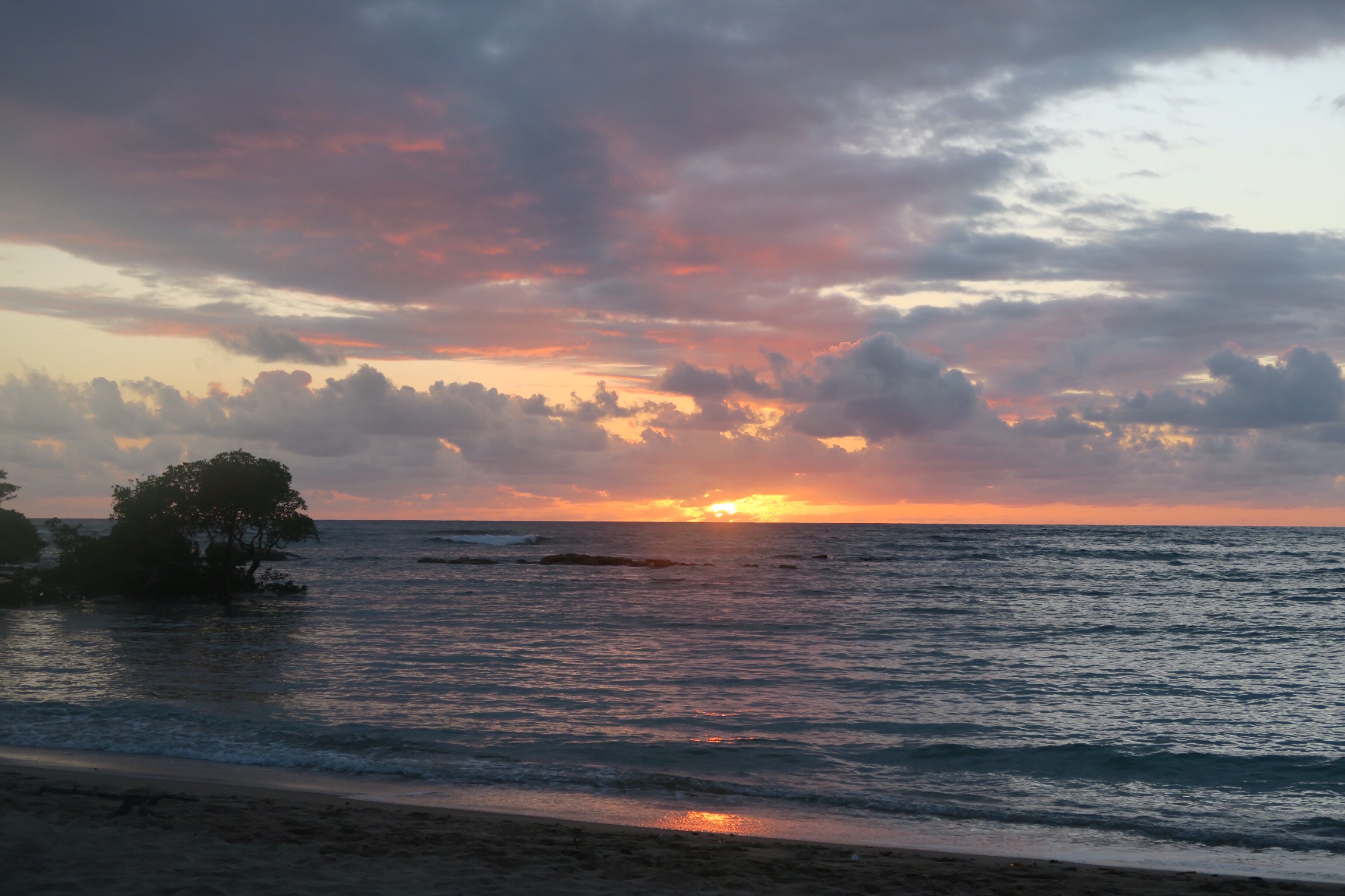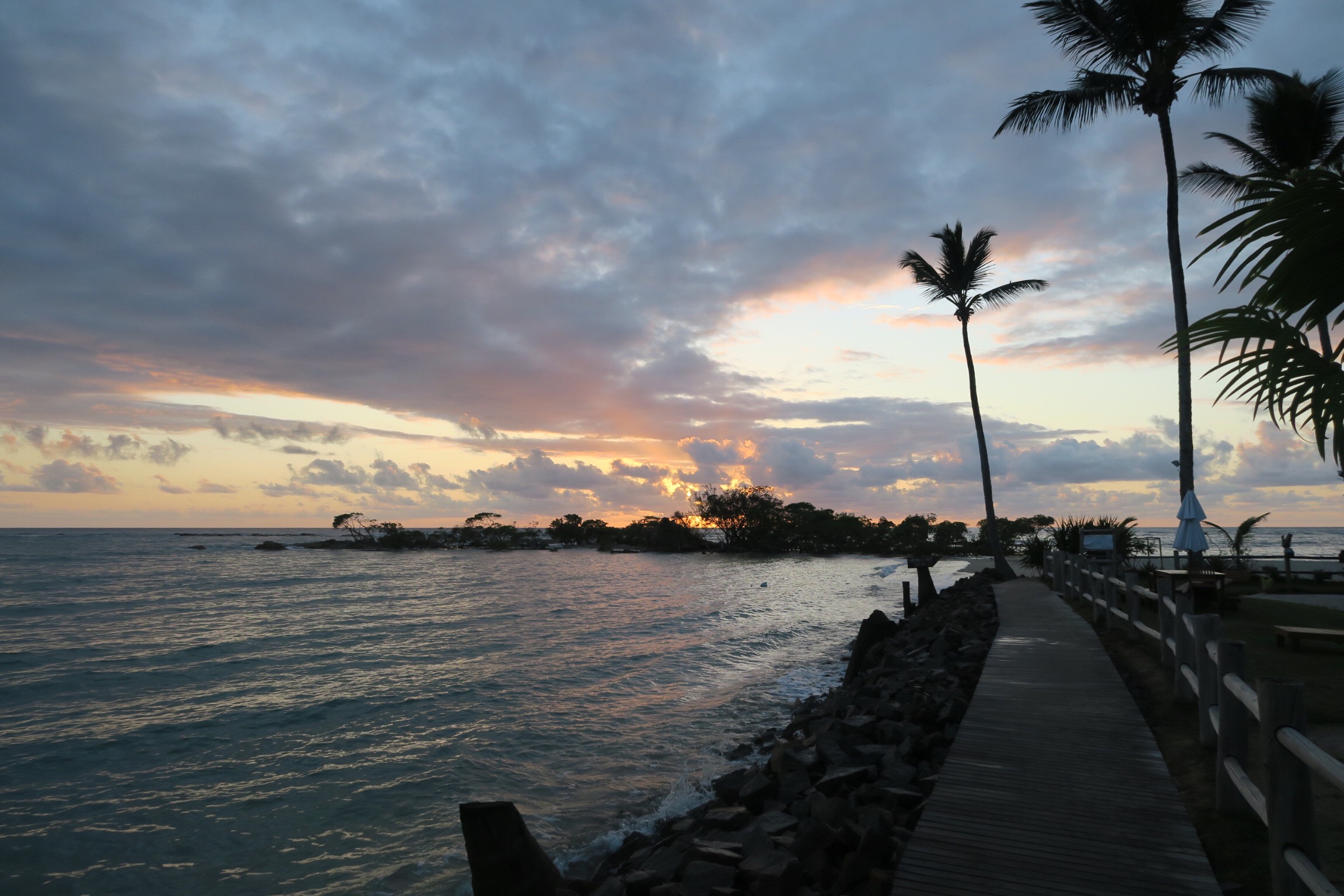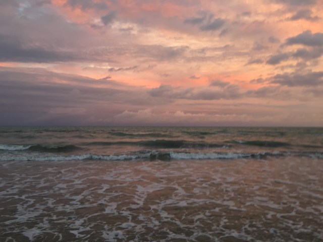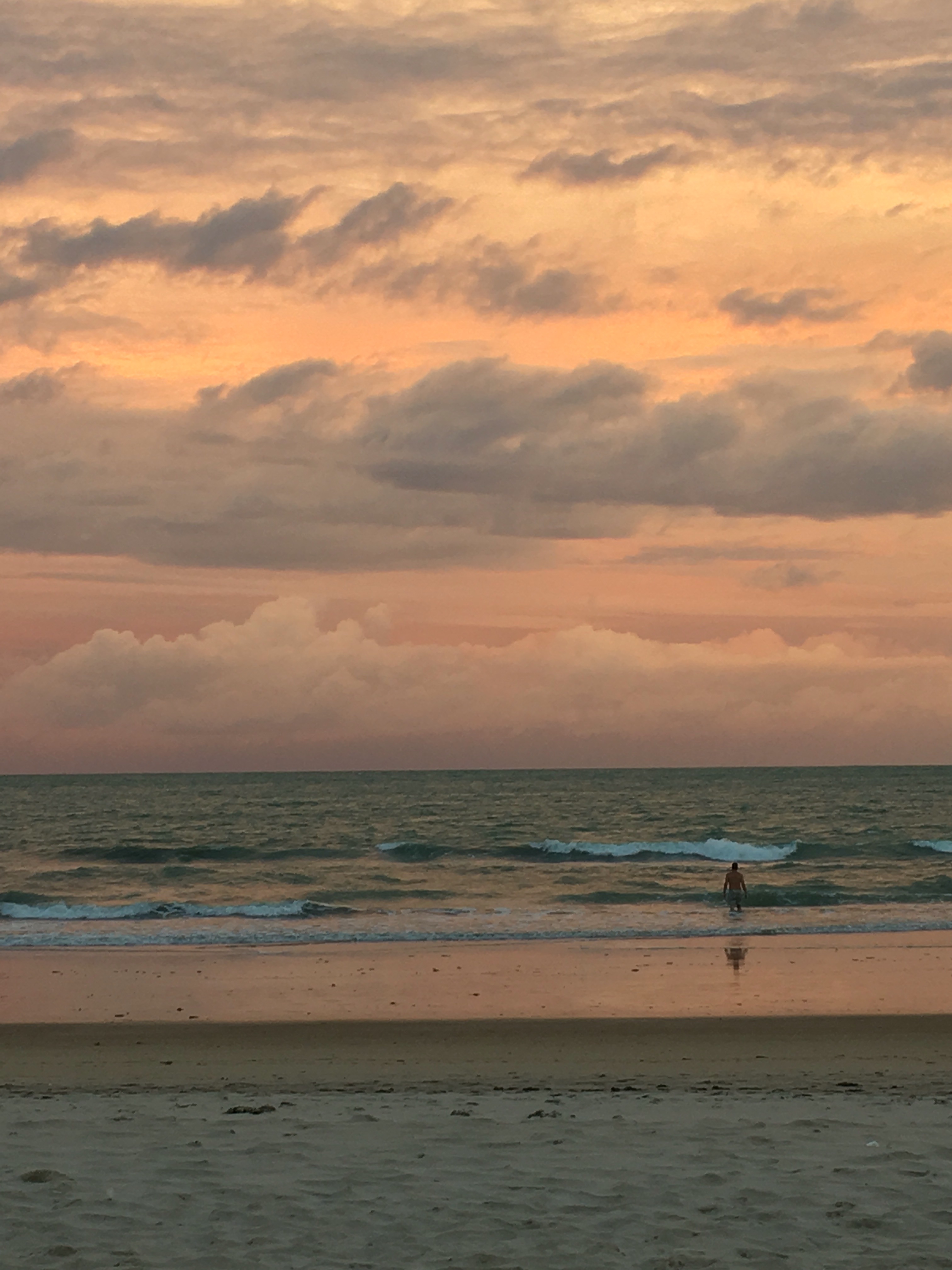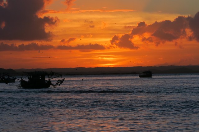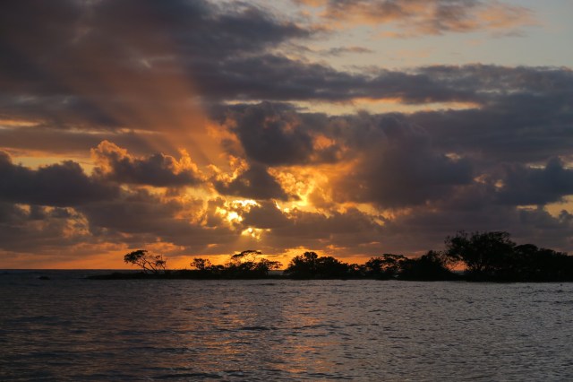 We woke up to pouring rain and stayed in our bungalow until around noon. We ate some fruit and watched tv. Once the rain stopped we walked around awhile looking for food. We settled on the same burger place from the first day. We hiked a couple miles to the northeastern end of the island and swam in the bay next to port. The snorkeling here was fantastic again. There were baby sharks and sting rays all around us in the shallows and abundance of fish around the deeper rocks. There was also a school of tens of thousands of two inch long fish that surrounded us but never touched us. Swimming among them was truly incredible and indescribable. We took a bus toward the north western side of the island and hiked for awhile until we reached a rocky beach. We continues west over some difficult terrain but found a perfect sunset location. We stayed here for 30 minutes and took hundreds of pictures. It was the best sunset I’ve ever seen and we reluctantly walked back as it was getting dark. We stopped by the grocery store and grabbed some bread, meat, cheese, cereal, and milk. Once back in the bungalow we used some leftover red pepper and cucumbers to make some incredible sandwiches. Soon we were fast asleep.