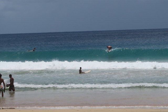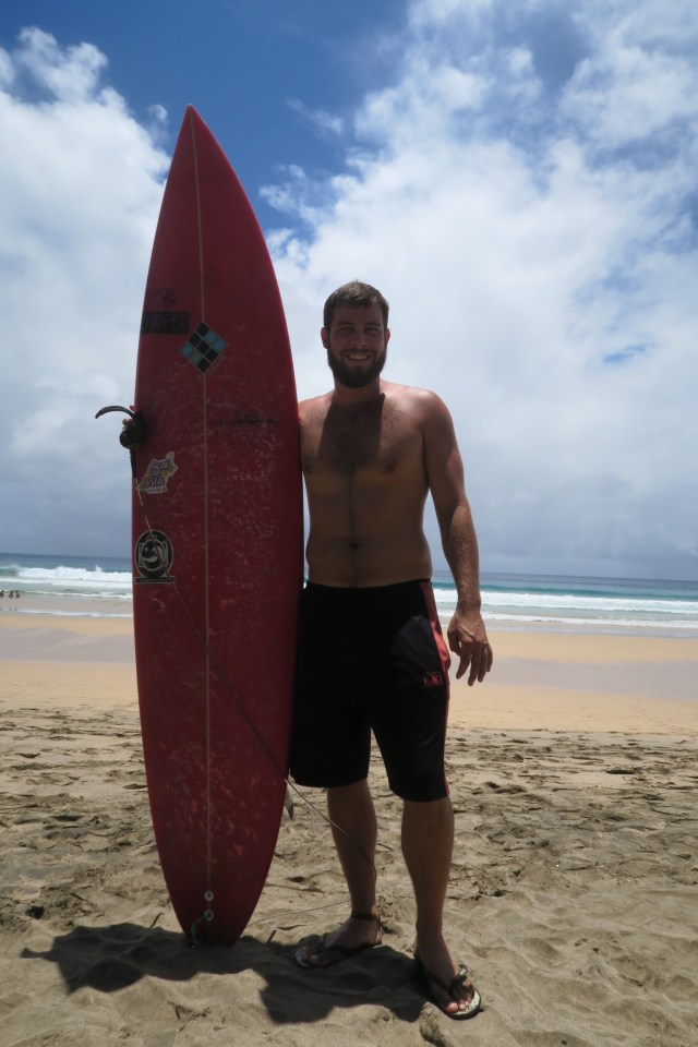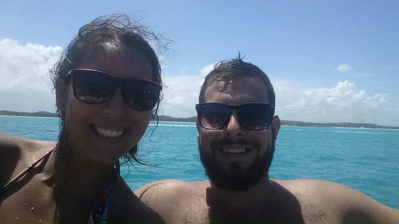 We had scheduled a boat tour the day before and woke up early to have a great breakfast. A shuttle picked us up and took us to port where we boarded a fairly small boat. We sat on the second level and had an incredible view of the sea and the island. Soon we embarked and sailed past the small islands off the northeast tip. We saw at least 25 dolphins swimming in this area and jumping out of the sea. Then we turned west and sailed the length of the north half of the island. We passed many beaches we had been to and had an up close view of some notable points like the mountain, two brothers islands, lion rock, and the far west point of the island which has a hole through to the other side. We met some nice people on the boat and stopped in sancho bay to snorkel for about 45 minutes. Then we returned to port and were very sad to end the tour. We headed straight to the beach after stopping in a grocery store for calzone like pastries for lunch. We rented an umbrella for $2.50 and escaped the very hot sun. I rented a surf board and attempted to surf for the first time. I wouldn’t call it a complete failure but it certainly wasn’t a success. I’ll have to practice again in the future with better waves. The front of my body was banged up and rubbed raw from the board and the rest of me was sunburnt. I took a break while Sarahi attempted to surf as well without much success. It started to rain and I attempted surfing again. After that we returned to our pousada to shower and head to the airport for our flight. The airport is tiny with only two planes flying through each day. An hour later we landed in natal and ate subway in the airport for dinner. I found a 5 star hotel near the beach for less than $50 a night and decided to book it for two nights. We were excited for our first wifi in the week and had no desire to leave the shade and air conditioning of our room. Most of all I was excited to watch some March madness, but was asleep as soon as the games ended.