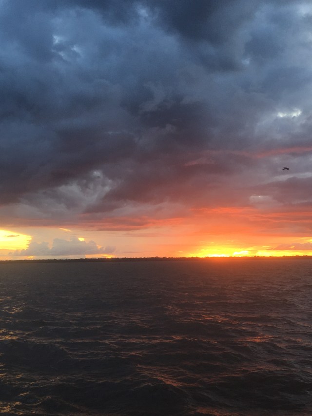 I woke up feeling ok and without a fever. We asked the owner to stay another night and decided to go to alter do chão, a beach area in the middle of the Amazon! We took a bus about 45 minutes from the city (after waiting an hour for the bus) and arrived in a beautiful area dubbed the “Caribbean of the Amazon”. There were beautiful sandy beaches and plenty of restaurants serving drinks and fresh fish. We took a boat about 100 yards across to a thin sandy peninsula bordering a lake. There were no mosquitos and we swam in the water assuming there were no piranha. It was really beautiful and nice. After a few more hours of relaxation we headed to the bus stop. We found a very long line but managed to be the last people to squeeze into a very crowded bus. We had to stand most of the way back but were happy to return to our nice apartment rather than waiting an hour for the next bus. It was dark by the time we reached our apartment. We had planned to make some soup but when we went to the store we couldn’t find everything we needed and were tired. We ended up having ramen noodles with eggs inside which was still delicious!