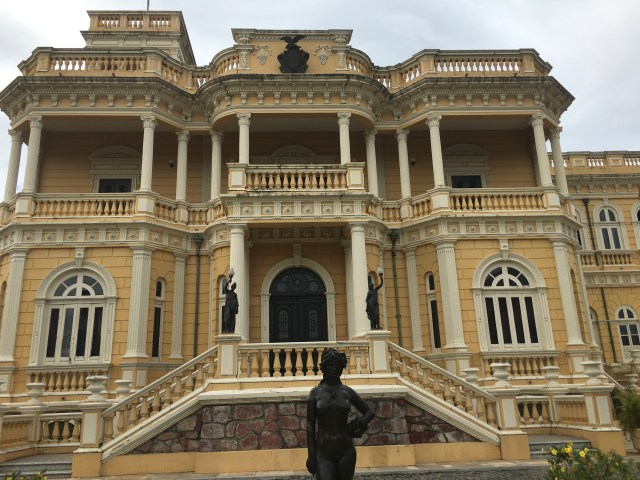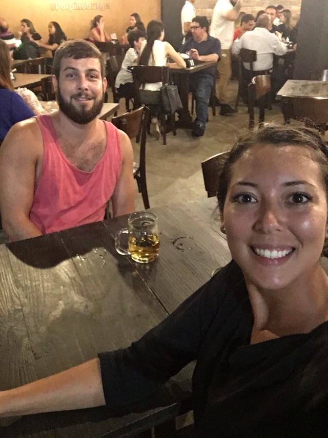 Since this boat wasn’t shipping much cargo the trip went quickly and we arrived around 6 in the morning. We saw the sunrise, packed up, said goodbye to the family, and went on our way to the hostel. We couldn’t check in until 12 but we got to drop our bags off and they let us have breakfast there. After some food in our bellies, we visited a beautiful and well kept park until the museum of the Black River Palace was opened. We spent some time talking and looking at all the plants and the art and the descriptions of the Amazonian state before we wandered a little more around the city. We got some delicious fruit juice and watched the news before heading back towards the hostel. We visited the Teatro de Amazonas which is the oldest opera house in Brazil. The super nice and helpful guy at the desk apparently liked us and gave us discounted student tour tickets (R$10 each) and we waited until 11 for the English tour. The opera house was so beautiful!! I was obviously day dreaming and was imagining myself singing Phantom of the Opera on that beautiful stage. We got to see a rehearsal of a symphony and an opera singer for a few minutes which made me miss my high school band. We got to hear the history of the building which was very colorful and saw many closed parts of it. After that, we were told that we should try an Amazonian dish named Tacaca which is made from a plant that numbs your mouth. We tried it in a nearby restaurant and decided it was a good flavor, but not really for us. After all that, we headed back to the hostel. Pretty much right after we settled in, we met two guys named David from Australia and Willam from Holland. After a little introductory chat, Luke and I headed out to go grocery shopping since I was itching to get back into a kitchen. Weirdly, Brazilians don’t eat tortillas so I couldn’t make chicken enchiladas like I wanted to but ended up getting other groceries instead. When we returned, we hung out on the terrace, drank a few beers, and met a few other people at the hostel. That night after an adequate stuffed chicken and rice meal, we ended up going to a local bar, Caldeira, and hung out until bedtime. We slept in an air conditioned room with 10 beds.