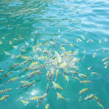We took a very bumpy boat ride with our teacher from France towards a bay specifically used by the company. We hung out there for a little, then we went on a small dive. He taught us how to empty our goggles of water while underwater and how to clear out our regulators.