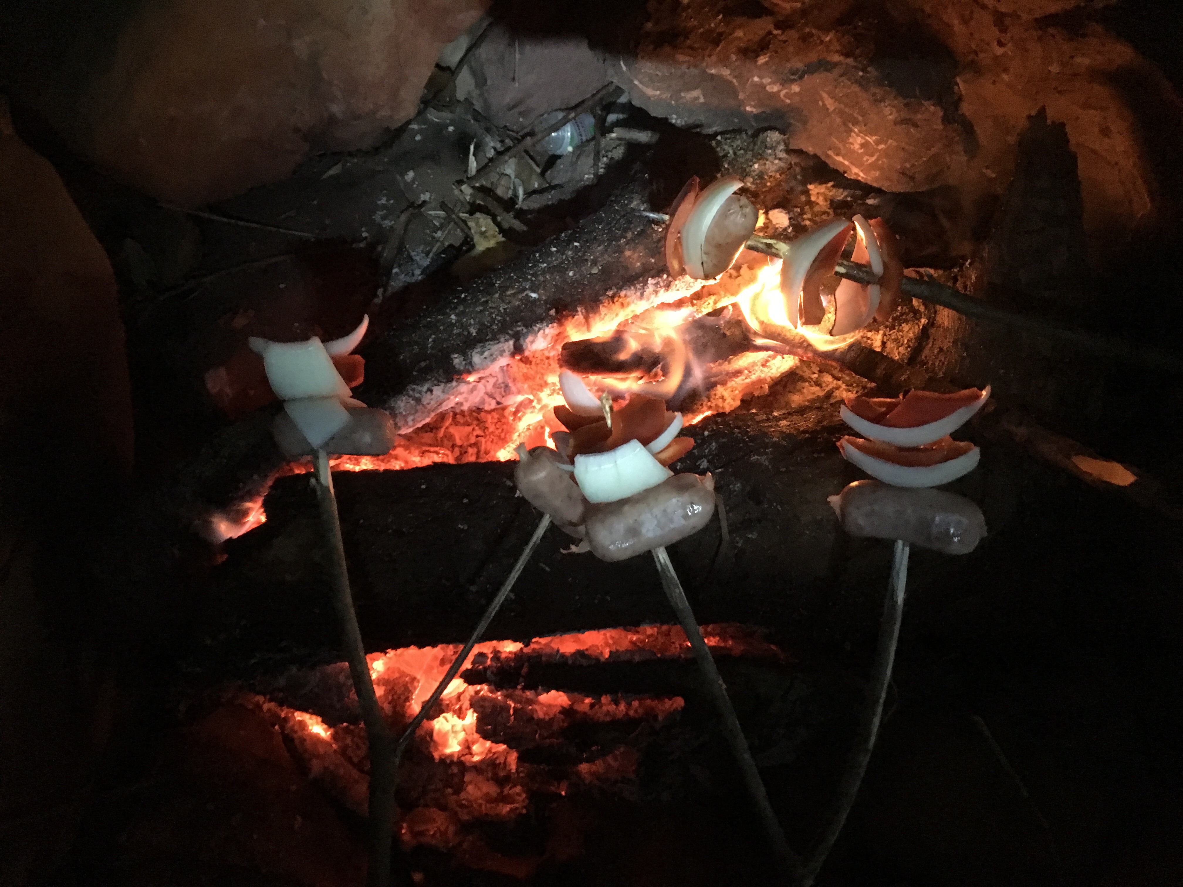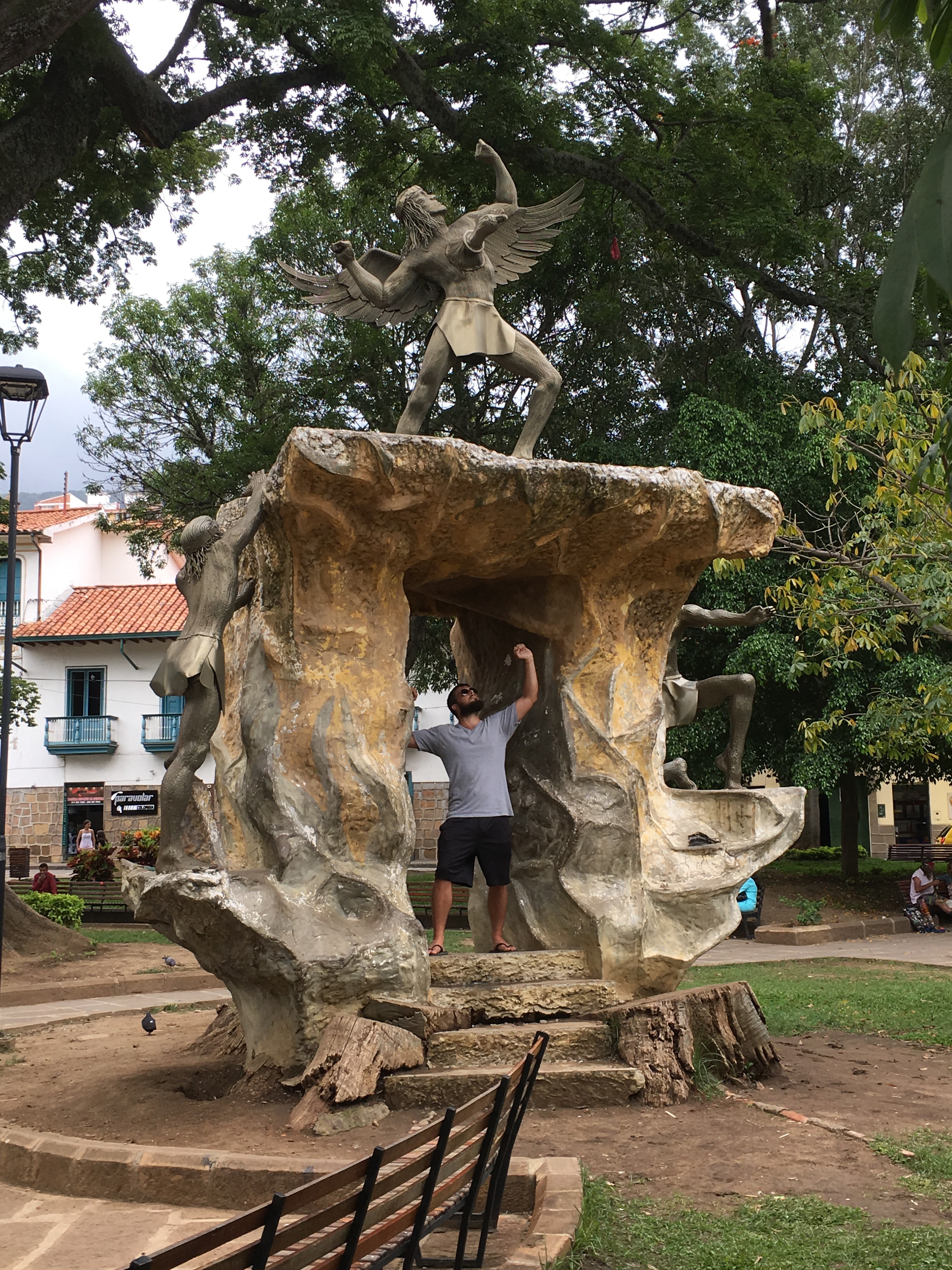 We went to the local nature park in the morning. It was well maintained and beautiful. Then we took a bus to Barichara, a beautiful colonial town only an hour or two away. After visiting the church, we walked out of town and found a stone trail built in the 1800’s by a german engineer. We walked for a few hours to a smaller town called Guane. It was also very old, and we were told camping was allowed on the soccer field on the edge of town. We built a great campsite, and then bought a few things for dinner. We mixed cheese, ham, and green apple, all diced, and hollowed out the loaf of bread with a stick. Then we stuffed the bread and cooked it over the fire. It was delicious. After some beer and s’mores we went to sleep in our hammocks.