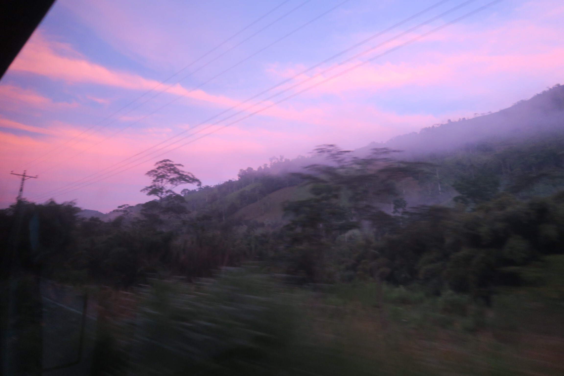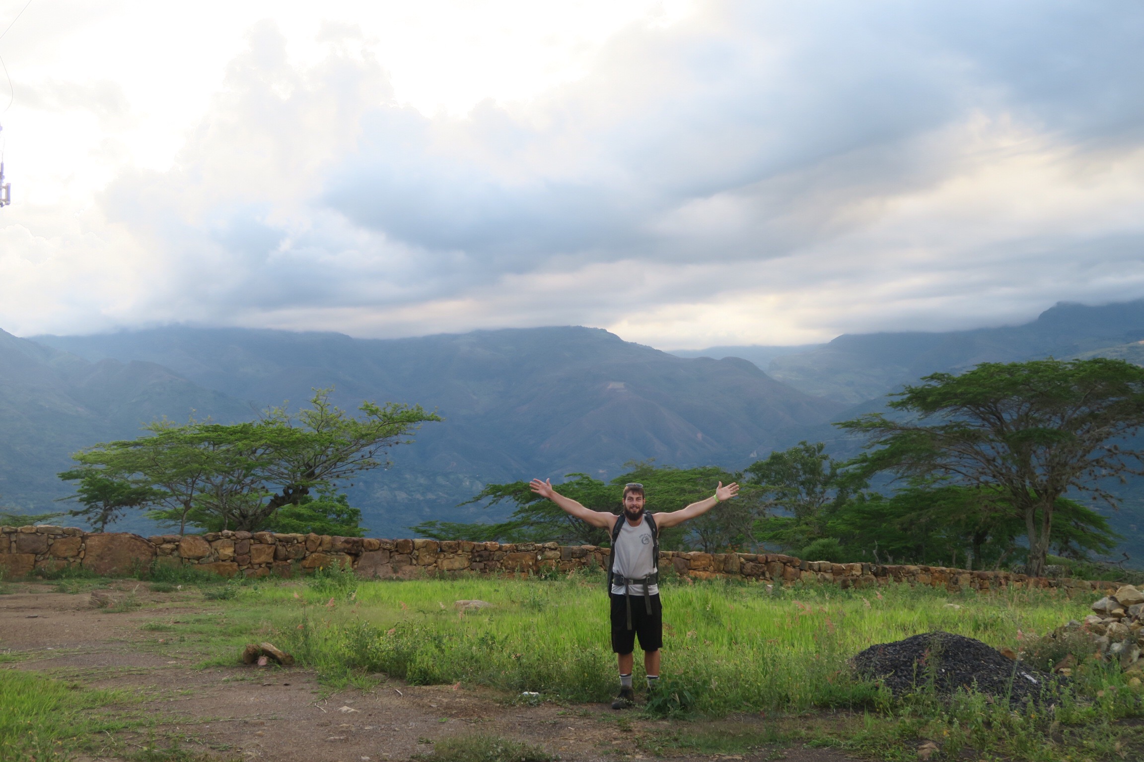Last tortuous day of canyon hiking. We woke up to an amazing sunrise, ate as much of our remaining food as we could, dried our equipment in the sun, and then began walking. It was easy for the first hour until we reached the edge of the canyon. It was a great view, but we knew we were in trouble. We hiked three thousand feet down into the canyon until we reached the small ghost town of Jordan next to the river. We were very hot, thirsty, and exhausted by the time we reached the town. We met some reporters who interviewed us and took thousands of pictures. We may be famous in Colombia by now. we ate a very simple lunch for about $1.50 per person at the only restaurant in town. Then we rested and rehydrated before starting back up the steep canyon wall. The path was cobblestoned for much of the way, but it was still the most miserable afternoon of my life. It was hot, and we were exhausted. We stopped every hundred yards or ten minutes for a break. There is no transportation out of Jordan, so our only way out was to hike to the town on top of the cliffs. After what felt like eternity, we reached the top and were happy to rest. We took a series of busses back to San Gil, and immediately fell asleep in the busses. It was however, one of the best hikes of my life. We followed some instructions from wikipedia and only lost the trail a few times. The views of old colonial towns, as well as mountains, valleys, and canyons, made for an awesome adventure.